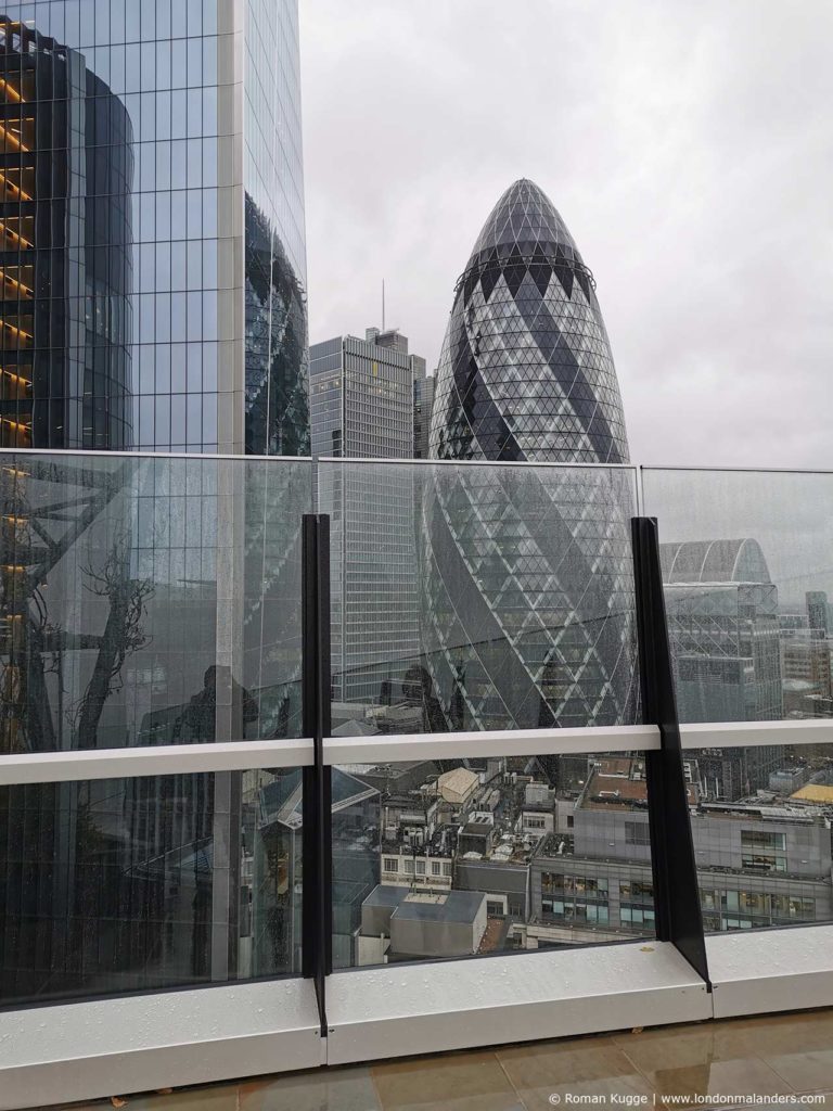 Außerdem lassen sich auch diverse Sehenswürdigkeiten vom Dach dieses Gebäudes erblicken: The Shard, The Walkie-Talkie, The Gherkin, die Tower Bridge und der Tower.