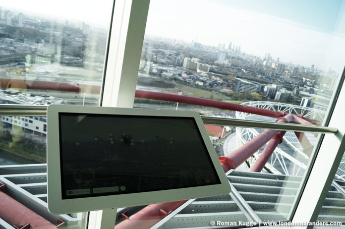 Die Aussichtsplattform besteht aus einem sehr schlichten Innenbereich und zwei Außenbereichen. Zugegeben, die Aussicht auf London ist nicht die allerschönste, da an relativ weit entfernt vom Stadtzentrum ist. Man kann jedoch den Olympiapark sehen, das West Ham Stadion, das Westfield Centre, Stratford oder auch Canary Wharf. In der ferne erkennt man auch die City.